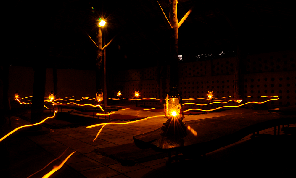 At night the complete area is dotted with hundreds of lanterns, which light up the way even as you breathe in the natural surroundings. The sky is lit with a million stars and the ground emanates a muddy fragrance.